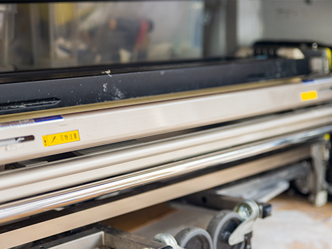 きれいに剥がし終わったら、いよいよ新しいクロスを貼ります。クロスはロール状に巻かれて搬入しますが、それをクロス糊付け機に通して、裏面にノリを塗ります。糊のついたクロスの端を持って、脚立に上がり、壁と天井の角に合わせて位置を決めます。これが曲がってしまうとクロスが斜めに貼りついてしまうので神経を使います。だいぶ慣れたつもりでも、この瞬間は毎回緊張します。最初のうちは真っすぐ張るのが難しくて、失敗もしました。なんとか貼り直せればよいですが、たわんだり傷がついてしまうと、クロス一巻が台無しになってしまいます。