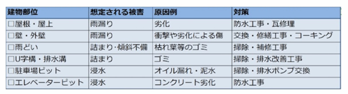 安定した賃貸経営を行うためには、大雨などの自然災害全般に対し、日頃から備えておく事が重要です。