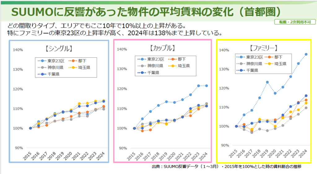 賃料は、エリア・間取りにもよりますが、通常の賃料より、15%から25%程度上がるケースもあります。
