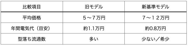 新基準対応モデルは電気代を抑えるメリットがある一方で、大家族や広い住居で複数台の買い替えが必要な場合は初期費用が高くなります。